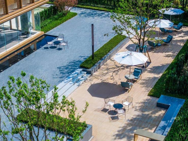 况且,这份质感不止于远观,也禁得起细究,比如,项目外立面用了金属氟碳漆工艺,比常见的真石漆、仿石漆更贵,但耐候性也更强,更长久的保持建筑的美观度。
