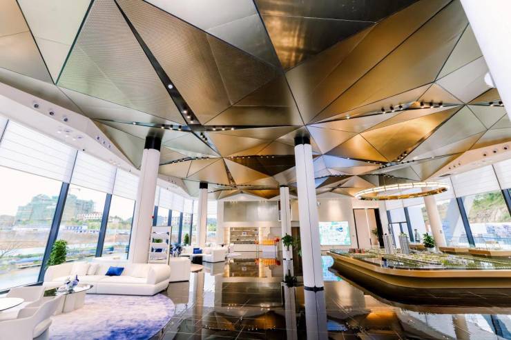 营销中心本身便是艺术杰作,不同于传统刻板设计,它以“高奢艺术品风格”为核心,钛金线条切割光影,全景玻璃幕墙引天光入画,YUTIAN珠宝于镜艺空间中折射璀璨,归岚香氛暗涌东方诗意。这里无售楼处的喧嚷,唯见高定美术馆的静谧——金属与石材的低语,皆是精工传世宅邸的序章。到访者踏入即驻足流连,媒体镜头争相捕捉这份惊艳,赞誉其为“贵阳高端人居的美学新地标”。