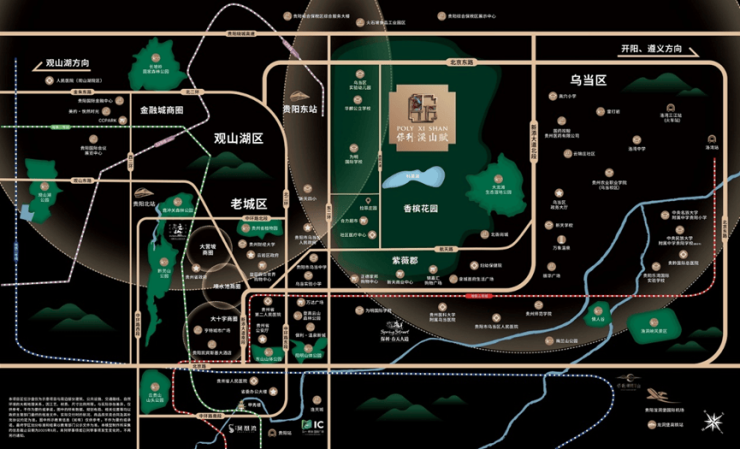 项目坐落于贵阳主城区,却拥有三面环山的自然格局,巧妙实现了“离尘不离城”的生活平衡。业主既能快速抵达观山湖核心区与老城繁华地带,又能回归静谧山居,从容切换生活场景。这种“进退自如”的生活,精准击中了塔尖人群对“高效与诗意并存”的终极追求。