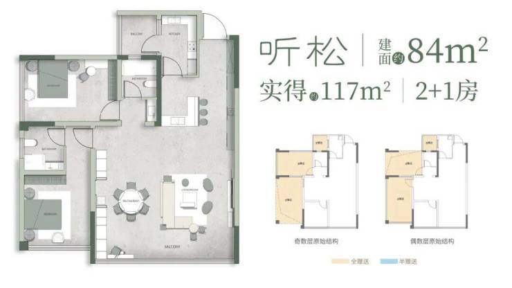 作为新规之下的迭代产品,观山及第在户型设计上同样表现亮眼,实现了“负公摊”,得房率最高约142%。建面约84㎡实得约117㎡,建面约97㎡实得约137㎡,以“小面积”实现“大尺度”的居住体验。同时,户型设计采用LDKB一体化布局,在采光、通透性与家庭互动尺度上做到显著升级。并在玄关、餐边柜、客厅等多处预留系统收纳空间,贴合改善家庭对实用性与舒适度的双重需求。
