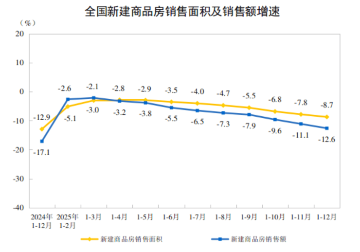 2025年末,商品房待售面积76632万平方米,比上年末增长1.6%,比11月末回落1.0个百分点。其中,住宅待售面积增长2.8%。