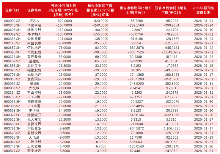 自今年一月下旬以来,A股上市房企陆续披露2025年的业绩预告。